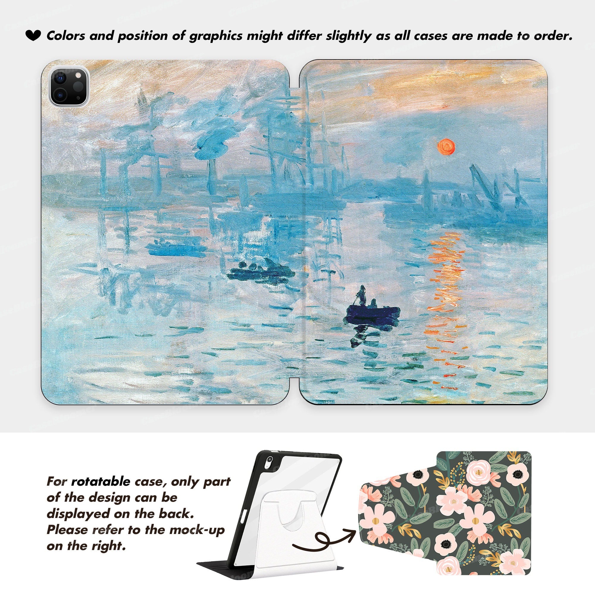 Custom Name Claude Monet Impression Sunrise Painting iPad case, Free Personalization
