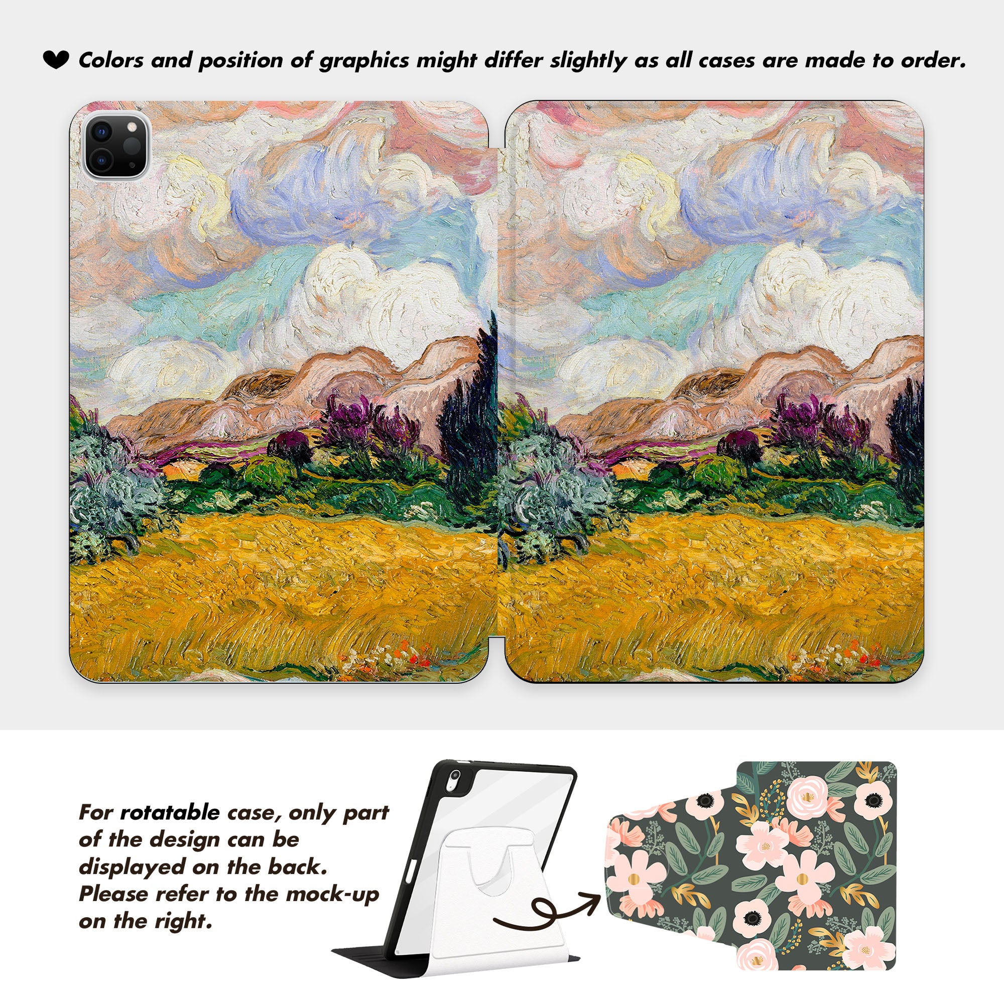 Custom Name Van Gogh Wheat Field Cypresses Autumn Oil Painting iPad case, Free Personalization